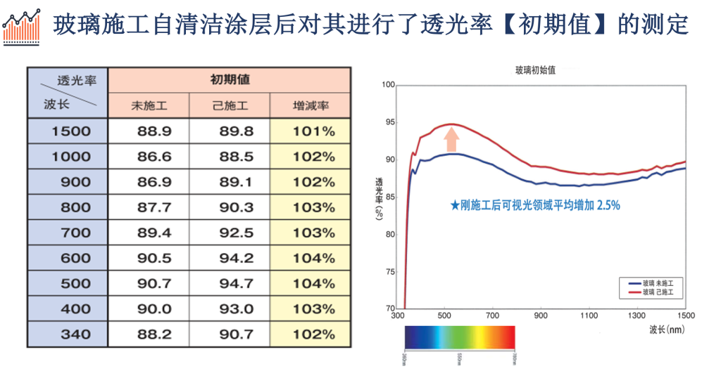 涂層表面細微凹凸結構減低對可見光的反射,100納米超薄透明涂層增加了可見光的透射。